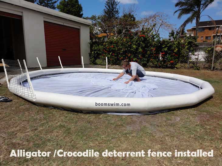 Boomswim is constructed of top quality materials and can be inflated in minutes. While deflated it is a compact package. After inflation the standard Boom Swim opens up to a 6m by 4m swim area. Larger sizes are made to order and 3 or 4-sided or circular designs are available. Once inflated, the attached netting forms a barrier on the sides and bottom to create your protected swimming pool enclosure.