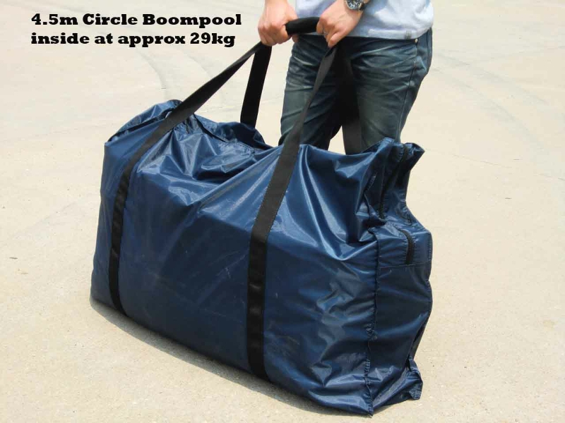 When not being used, the light weight Boomswim can be pulled up on shore, left inflated, or deflated and packed for transport or storage, as desired. The whole assembly is compact and portable ready for your next use. There is no maintenance, no circulating pump to run, no filter to clean, no testing or chemicals to add, and no draining and water top-up.