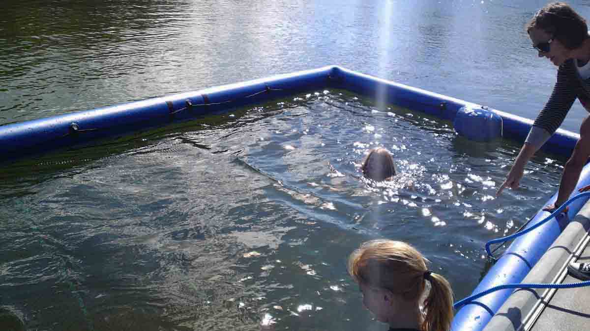 Boomswim underwater netting Unpacking Boom Swim Inflatable Pool 4-sided floating inflatable in-water swimming pool Boomswim 4-sided swimming zone enclosure Care-free Inflatable Floating Swimming Pool Self-filling pool with underwater security netting Boom Swim laid out on land ready to throw in water Jellyfish danger and protection x 1 Circle full netting Boomswim 4.5m Circle full net Boomswim Water polo full net enclosure Water-polo portable netted arena Anti-shark heavy duty net River side jetty protected swimming